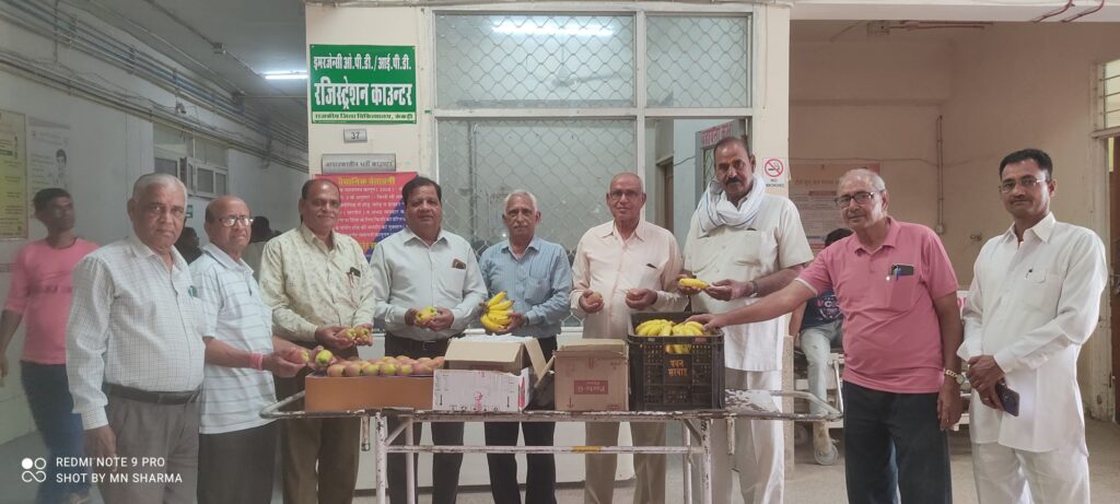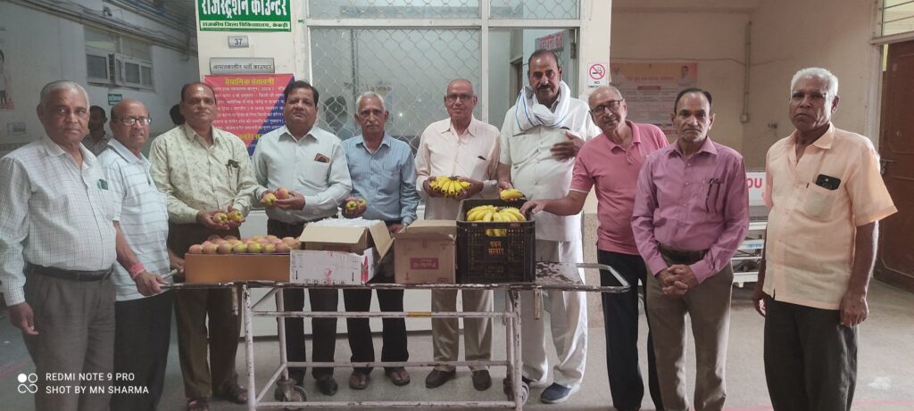 *जिला चिकित्सालय में आज* *राजस्थान पेंशनर समाज जिला शाखा केकड़ी* *के तत्वावधान में बघेरा निवासी श्री देवेंद्र जी शर्मा नेअपनी पूजनीय माता* *स्वर्गीय श्रीमती गीता देवी शर्मा धर्मपत्नी स्वर्गीय शिक्षाविद श्री मांधाताशर्मा जी* की* *पुण्यस्मृति* *पर जिला चिकित्सालय में लगभग 300 मरीजों को फल वितरित करके पुण्य अर्जित किया।*