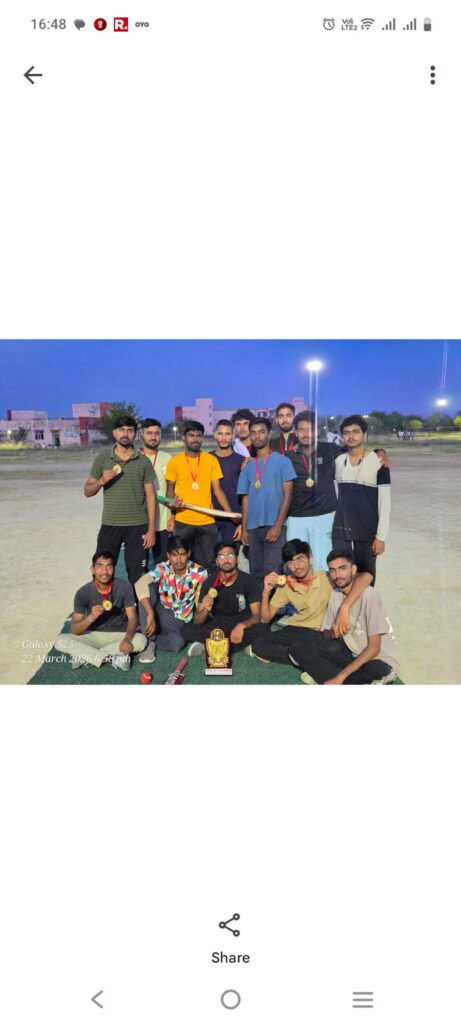 *क्रिकेट प्रतियोगिता में बी.टेक तृतीय सह द्वितीय वर्ष की टीम ने शानदार प्रदर्शन करते हुए विजेता का खिताब अपने नाम किया, जबकि बी.टेक प्रथम वर्ष की टीम उपविजेता रही।*